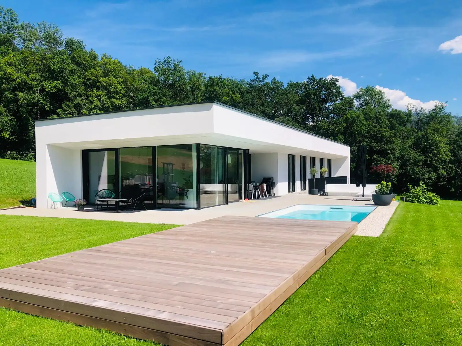 Die Außengestaltung möchten sie auch gerne mitgeplant haben, etwa die Gartengestaltung, den Pool oder gar eine ganze Poollandschaft (hier arbeite ich mit Garten- und Landschaftsplanern zusammen).